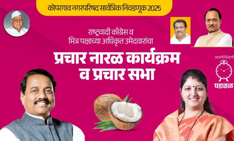कोपरगाव नगरपरिषद निवडणुकीच्या राष्ट्रवादी काँग्रेसच्या नगराध्यक्ष व नगरसेवकांच्या प्रचाराचा शुभारंभ शुक्रवार दि.२१नोव्हेबंर रोजी दुपारी ४.०० वाजता डॉ.बाबासाहेब आंबेडकर मैदानावर होणार आहे. याप्रसंगी माजी आमदार अशोकराव काळे यांच्या अध्यक्षतेखाली होणाऱ्या या प्रचार शुभारंभ कार्यक्रमा प्रसंगी राष्ट्रवादी कॉंग्रेस पक्षाचे प्रदेशाध्यक्ष खा.सुनील तटकरे, महिला आयोगाच्या अध्यक्षा रुपालीताई चाकणकर,